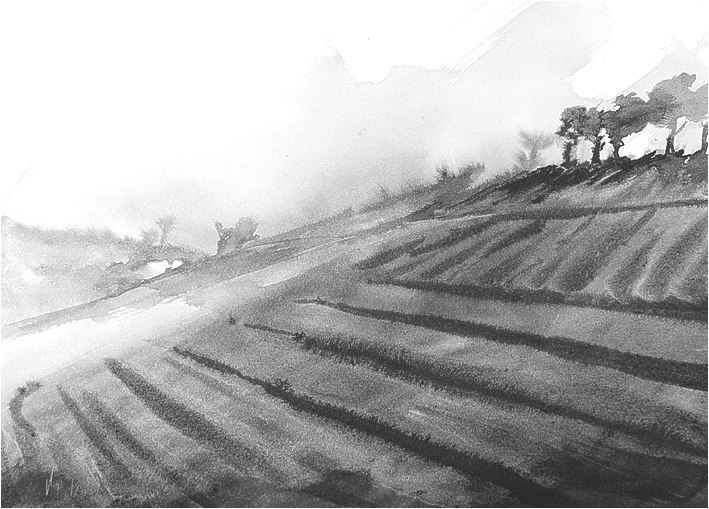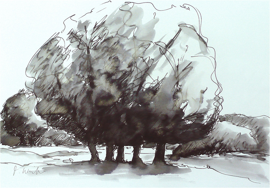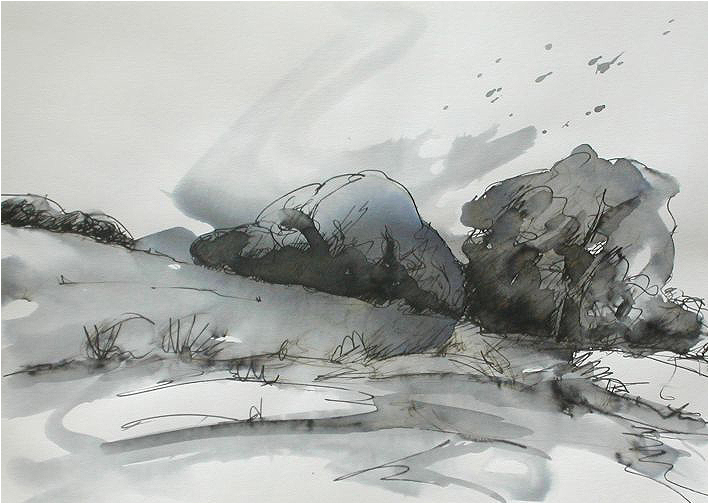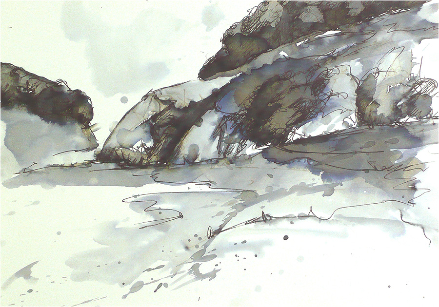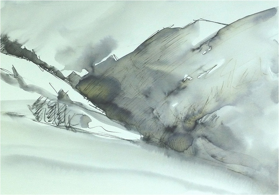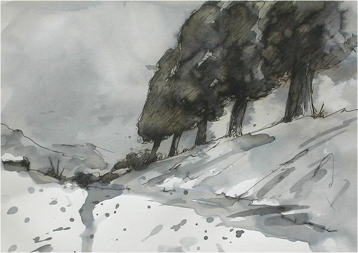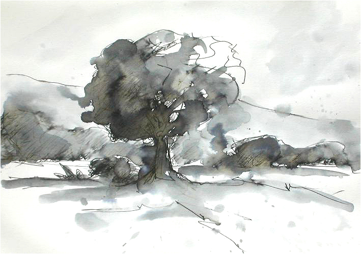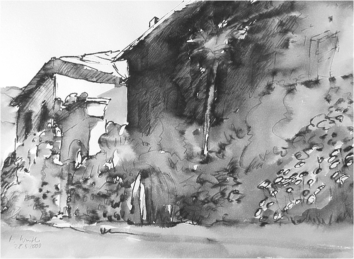 | Zeichnungen (Tinte auf Papier, mit Wasser laviert) zurück |