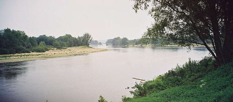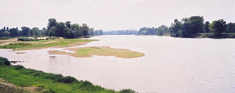 Heute sind wir endlich wieder hier und dürfen dem Fluss folgen, die Vororte Nevers' hinter uns lassen und in die typisch-französische Bocagelandschaft eintauchen: Wiesen, Hecken, Büsche, Wäldchen, Vieh auf den Weiden und immer wieder der Blick auf die Loire mit ihren Sandbänken. Es ist immer noch recht trübe und ab und zu spüren wir den ein oder anderen Regentropfen, es ist aber zu wenig um es als Nieseln zu bezeichnen (in einer Bar bezeichnet es die Wirtin als "Spatzenpisse"…) und die Temperaturen halten sich in Grenzen. Auf der negativen Seite gibt es heute einen totgefahrenen Fuchs zu verzeichnen, eine Bisamratte und einen Igel, die beide derselbe Tod ereilte, meine Knie sagen "Hallo, hier sind wir wieder!" und meine Handgelenke schmerzen nach ein paar Kilometern, das wird die ganze Reise über auszuhalten sein. Positiv ist unsere Stimmung (obwohl diese natürlich im Laufe des Tages diversen Höhen und Tiefen unterworfen ist), zwei Fischadler die über dem Fluss rütteln, die vielen Schwalben die sich auf den Stromleitungen für ihre eigene grosse Reise sammeln und dass wir endlich wieder unterwegs sind!