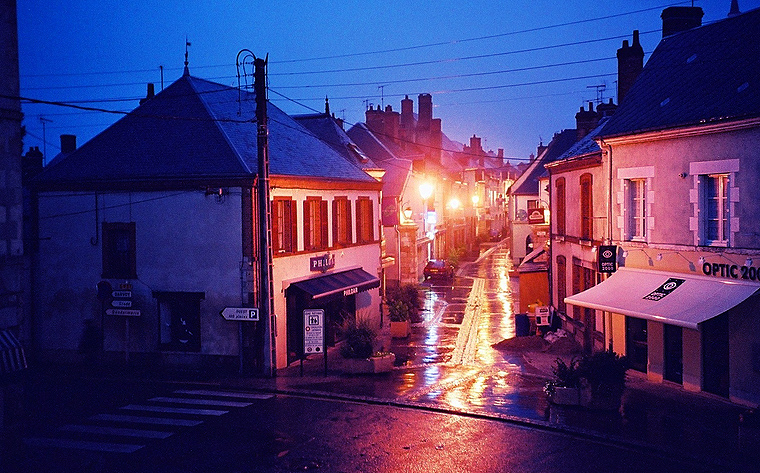 Tag! Aber in der Stadt finden wir sofort ein Zimmer im Hotel Cheval Blanc. Bald ist das Hotelzimmer mit unseren nassen Kleidern und dem ohnehin überfälligen und immer noch nassen Zelt dekoriert. Beim Abendessen diskutieren wir auf's Neue die Helmfrage, später im Zimmer mache ich dann noch die Erfahrung, dass sich ein Fahrradschlauch auch nach dem Genuss von einigen Gläsern Sauvignon Blanc noch ganz gut flicken lässt - es ist irgendwie lustiger… |