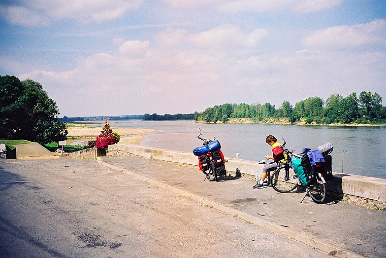 Ein neblig-trüber Morgen. Damit hat keiner gerechnet, man gewöhnt sich so schnell an trockenes Wetter - die Regentage am Anfang der Reise liegen gedanklich schon weit zurück. Immerhin ist es trocken und einigermassen warm, das geht ja noch! Gestern hat sich die Windrichtung geändert, wir haben wieder Wind und Wetter aus Westen und damit ist's wohl vorbei mit der stabilen Witterung der letzten Tage. Wir nehmen das am Campingplatz angeboten Frühstück in Anspruch (hmmm…wunderbar gesalzene Butter) und sind schon bald auf Piste. Durch die Vororte von Angers hindurch nieselt es leicht, aber einige Kilometer ausserhalb der Stadt kommt die Sonne langsam durch den Nebel und bringt eine eigenartig mystische Stimmung hervor. Der Fluss ist hier sehr breit mit seinen vielen Neben- und Altarmen. Alles gleicht heute einem Sonntagsausflug: Sonnenschein und milde Temperaturen, eine sanfte Landschaft, unser eigenes Tempo zurückgeschraubt.