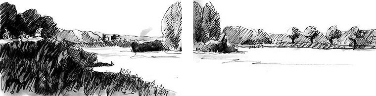 uns doch immer wieder Hecken, Buschgruppen und Wäldchen vor ihm ab. Morgen werden wir also das Meer erreichen, das drei Urlaube dauernde Projekt "Oberviechtach bis zum Atlantik" wird damit abgeschlossen sein. Naab- und Donautal, der Hegau, das Rheintal, Sundgau, Doubs, Burgund, Loire - Flüsse und Landstriche entlang des Weges. Ich erinnere mich noch genau wie ich vor einigen Jahren vom Gipfel des Altenschneebergs, dem Oberviechtacher Hausberg (oder -hügel) nach Westen in die untergehende Sonne und auf die in der Ferne immer transparenter werdenden Hügelketten blickte und mir diese Reise voller Sehnsucht ausmalte. Ich sah die melancholische oberpfälzer Landschaft zu meinen Füssen ausgebreitet und hörte doch schon das Möwengekreisch, spürte das Ziehen von Ebbe und Flut, den salzigen Geruch den der Wind hereinträgt. Jetzt, am Vorabend der Ankunft, hat sich die Sehnsucht längst relativiert, zuviel Zeit ist seit dem ersten Reiseabschnitt im Sommer 2000 verstrichen - man sollte solche Projekte in einem Atemzug durchziehen können, sieben oder acht Wochen hätten dafür locker gereicht.Trotzdem freue ich mich diese ganze Strecke mit dem Velo zurückgelegt zu haben, obwohl ich mir manche Passagen, zum Beispiel damals den Start in Oberviechtach, ganz anders ausmalte. Heute übernachten wir in Blain, einem Städtchen am Canal Nantes du Brest. Irgendwie ist man hier in Frankreich noch nicht an dem Punkt wo man sich Gedanken um autofreie Innenstädte macht: wie schon im Städtchen Nort, durch das wir heute im Laufe des Tages kamen, wird auch in Blain der Schwerverkehr quer durch die Innenstadt, an Marktplatz und Kirche vorbei, geleitet. Nichtsdestotrotz gibt es hier direkt hinter der Kirche einen Supermarché und einen unserer angenehmsten Campingplätze. Abends machen wir noch die Bekanntschaft eines jungen französischen Paares, das mit den Rädern den Kanal entlang fahren will. Die staunen nicht schlecht als wir ihnen von unserer Reise erzählen. Wir haben bisher erstaunlich wenige Reiseradler gesehen, hier im Lande scheint man von der in Deutschland, der Schweiz und Österreich herrschenden Radreisewelle nichts zu merken. |
