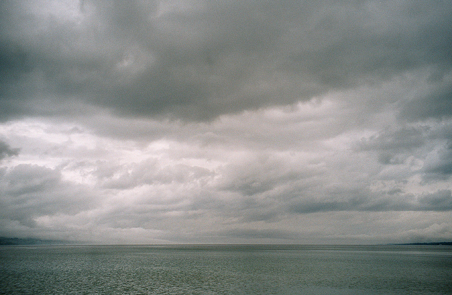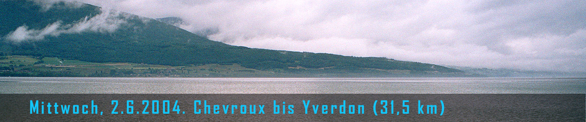 In der Nacht hört es auf zu regnen und wir können unsere klamm gewordenen Ausrüstungsgegenstände halbwegs trocken einpacken. Aber wir frohlocken zu früh: kaum sind wir unterwegs, fängt es wieder zu regnen an, und zwar recht heftig. Nach kaum fünf Kilometern stellen wir uns schon im Häuschen einer Bushaltestelle unter. Uff, da sinken Laune und Motivation! Estavayer-le-Lac ist nicht weit und dort sitzen wir erstmal patschnass in einem Café herum. Schade. Ich hab mir das Wiedersehen mit diesem netten kleinen Städtchen ganz anders vorgestellt! Nun ist es verregnet. Hm… Wir beschliessen, noch bis Yverdon durchzuhalten und uns dort ein Zimmer zu nehmen. Nach Estavayer führt der Weg immer in Ufernähe durch ein Naturschutzgebiet. Schilf. Aufwald. Unterholz. Regen. Links neben dem Weg ist "die Erde offen", das heisst, wegen Kanal- oder sonstigen Bauarbeiten wurde die Vegetation entfernt und man sieht nur lehmigen, nass-glänzenden Morast, durchzogen von Gräben, die mit braunem Wasser gefüllt sind.