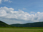 hier ebenfalls durch bewaldete Hügel geprägt, immer wieder mal