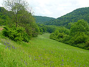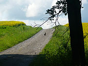 18. Mai. Von Bad Windsheim nach Heimhausen (77 Km) Das ist also gebongt. Ich bin keiner, der bei einmal getroffenen Entscheidungen den anderen Möglichkeiten oder Alternativen hinterher trauert. Mit dem Bewusstsein, dass die diesmal nicht besichtigten Orte und Landstriche den Appetit auf neue Ausflüge aufrecht erhalten, mache ich mich auf den Weg nach Westen. Das ist anfangs wieder mal mit einer kleinen Irrfahrt verbunden, denn obwohl ich am Marktplatz der richtigen Wegweisung folge, gerate ich erneut auf eine der Bundesstrassen, auf denen ich aber bei der morgendlichen Rushhour nicht fahren möchte. Das letzte Mal hab ich die Speedmachine in den Acker gesetzt, als ich in der anderen Richtung keinen Weg aus der Stadt fand. Irgendwie haben wir es wohl nicht so mit den Abschieden, Bad Windsheim und ich. Irgendwann peile ich es aber dann doch und nach nur zwei Kilometer Umweg befinde ich mich draussen vor den Toren der Stadt auf kleinen Wirtschaftswegen durch die nassen Felder und Fluren und werde wieder von den weiss-roten Schildern geleitet. Zeit, sich auch mal dem Wetter zu zuwenden. Im Osten ziehen die Gewitterwolken der letzten Nacht ab, im Westen tut es langsam auf. Da man hier, in der Windsheimer Bucht, weit über's Land sieht, ergibt das ein recht eindrucksvolles Bild. Mit der Sonne frischt auch der Wind auf und bläst stetig aus Südwesten, da behält man lieber mal die Handschuhe an. Die heutige Fahrt gliedert sich wieder in zwei Teilabschnitte: zuerst noch den restlichen Aischtalradweg bis kurz vor Rothenburg ob der Tauber und im Anschluss daran auf kleinen Landsträsschen querbeet bis hin zur Jagst. Von Bad Windsheim bis Burg Berneck geht die Chose im leicht welligen Auf und Ab auf kleinen Wirtschaftswegen dahin. Immer wieder mal blickt man über die weit über's Land. So mag ich das! Nach Burgbernheim begleitet der Radweg auf separater Trasse die Bundesstrasse bis Steinach. Von hier aus führt die Route auf Feldwegen über den Endseer Berg, bis man das Plateau erreicht, auf dem auch die Stadt Rothenburg liegt. Ob das jetzt hier noch die Frankenhöhe ist oder schon zur Hohenloher Ebene gehört, geht aus meinen Landkarten nicht genau hervor, was mir aber keine allzugrossen Kopfzerbrechen verursacht. Rothenburg, ansonsten gern besuchtes Juwel mit dem grossartigen Blick hinab in den Laubwald- und Buschwerkdschungel des Taubertales, bleibt diesmal links liegen. Also eigentlich eher rechts, denn ich fahre ostwärts über Schweinsdorf, Neusitz und Gebsattel an der Stadt vorbei. Zwar grüsst der ein oder andere Turm zu mir herüber, doch das eigentlich sehenswerte Stadtpanorama hat man von der anderen Seite, wenn man sich der Stadt von der Tauber aus nähert. Nun also hinüber ins Württembergische. Die Hohenloher Ebene ist ungleich ihres Namens eher ein welliges Fleckchen Erde, ich bin auf Landstrassen unterwegs und das erste Mal seit längerem wieder mit dem Autoverkehr konfrontiert. Man gewöhnt sich so an diese ruhigen Radfernwege, die meist komplett autofrei sind. Ich arbeite mich Ortschaft für Ortschaft voran: Lohr, Brettheim, Wiesenbach, Blaufelden, Raboldshausen. Kurz nach Billingsbach, unten an der Hertensteiner Mühle, folge ich einem Waldweg, der mich schliesslich hinunter ins Jagsttal trägt, das ich bei Eberbach erreiche. Noch ein Weilchen dem Fluss gefolgt und ich erreiche den Landgasthof Jagstmühle, in Heimhausen gelegen, etwas südlich der Stadt Mulfingen. Abends kann man draussen im Innenhof des Gasthofes sitzen und den Frühling geniessen, was ich auch auskoste. Während ich diese Zeilen hier in mein Tagebuch tippe, schnuppert eine Hornisse an meinem Weinglas. Aber hallo! Das Teil ist so gross wie mein Daumen! Der Volksmund hat früher die Angst vor diesem Tier geschürt, dabei ist es anscheinend eine friedliebende Wespenart. Vor dieser hier habe ich allerdings reichlich Respekt. |