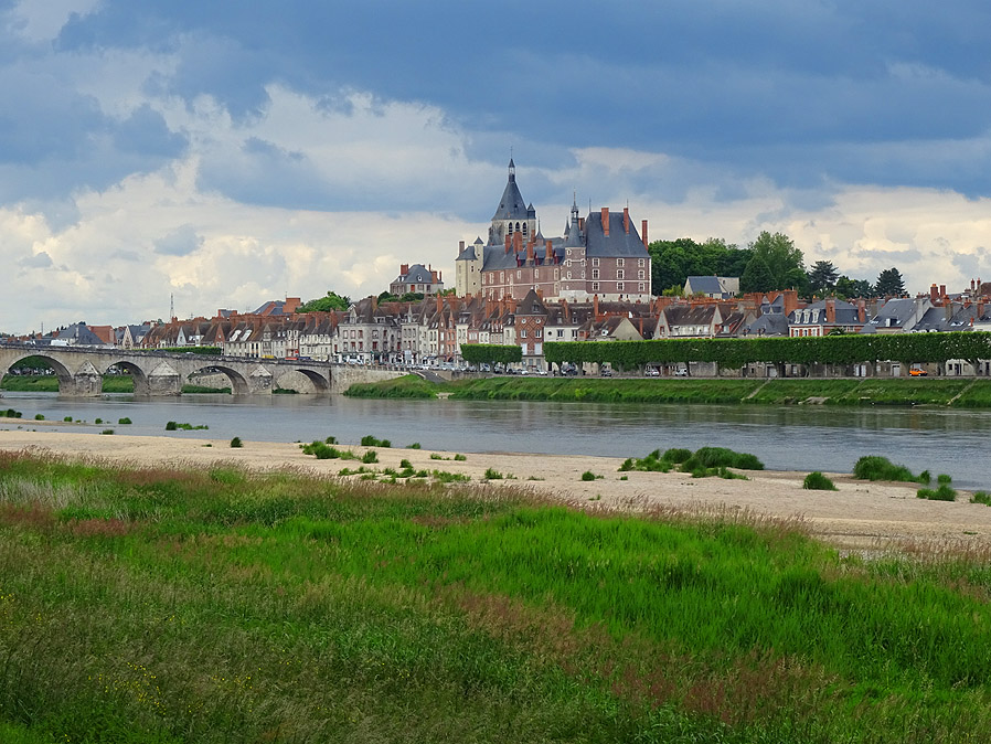Vormittags ist es windstill, gegen Mittag nimmt allerdings die Bewölkung zu, und Wind kommt auf. Damit wird es leider wieder anstrengend und das leichte Dahingleiten verflüchtigt sich. Wir treffen immer wieder mal auf die Loire und dabei denkt man automatisch an Foresters Schilderung in seinem eingangs erwähnten Roman. Neben dem Kernkraftwerk bei Neuvy-sur-Loire gibt's im Maison de Loire, einen kleinen Infocenter, ein Kaffeepäuschen. Hier verkaufen sie neben Büchern, Shirts und anderem Schnickschnack auch kleine Pfeifen, die Vogelstimmen imitieren. Und zwar hauptsächlich die der Nachtigall. Liege ich mit meiner Vermutung doch nicht so falsch? Nachtigall hin oder her, aber dass wir hier einen Bienenfresser sehen und fotografieren, wundert uns dann schon. Weiter gilt es anzuführen, dass Beaulieu-sur-Loire ein nettes kleines Dörfchen mit gepflegten Gärten ist, dass man in Châtillon-sur-Loire gut essen kann, und dass wir in Briare ein Wiedersehen mit der Kanalbrücke feiern. Und nach weiteren zwölf Kilometern und einem saftigen Anstieg hinauf nach Saint-Brisson-sur-Loire taucht endlich Gien am anderen Ufer auf. |