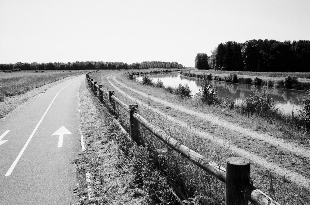 | Am Kanal entlang, der Morgensonne entgegen. | ||