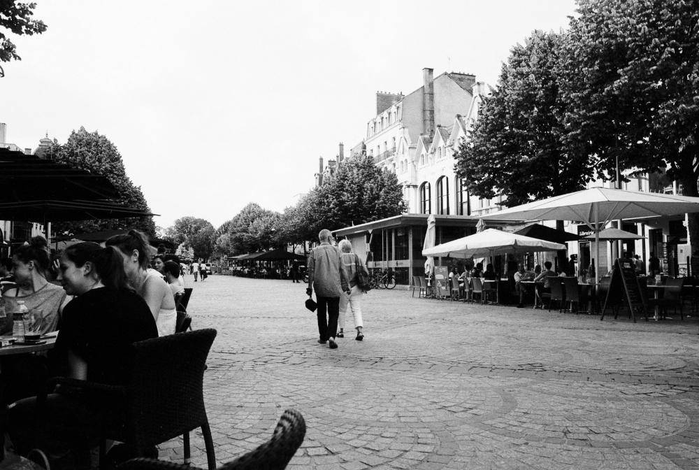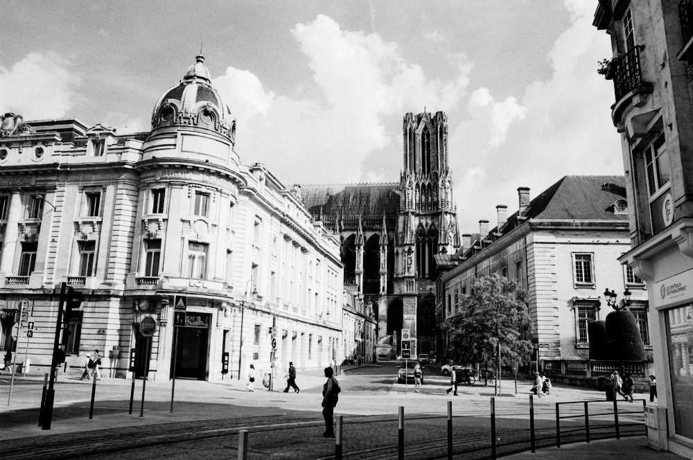 radeln und dort ein paar Tage verbringen. Reims erscheint uns heiter und gelassen. Alles mutet uns positiv an - Stadtbild, Kathedrale, die Freundlichkeit der Leute - vielleicht ist es auch nur unsere Verfassung, die sich nach einem guten Abendmahl gebessert hat. Und doch, die Stadt hat was Optimistisches an sich. Gerade wenn man abends in einem der Cafés in der Fussgängerzone sitzt und Passanten beobachtet. |
