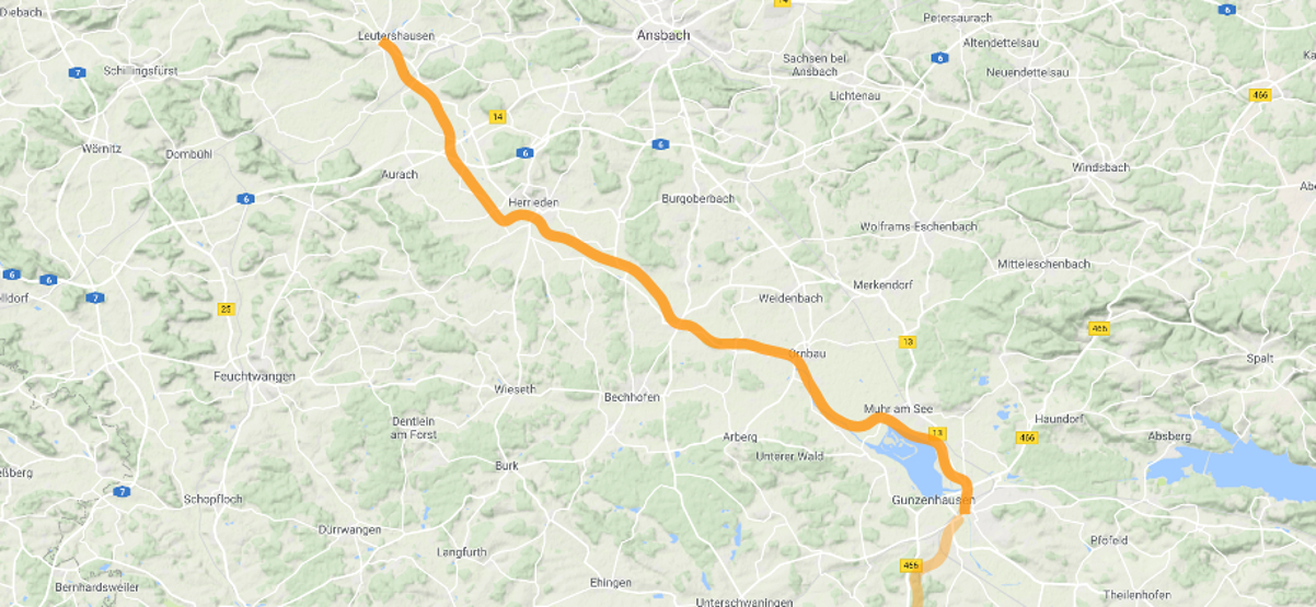 nach Norden gehen, die Altmühl hoch, dann zur Aisch, nach Bamberg und