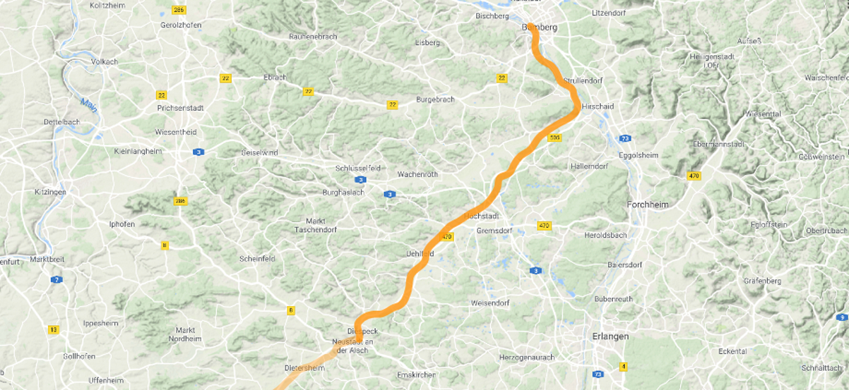 uns von der Aisch und schwenken nach Norden, ziehen noch bis Bamberg