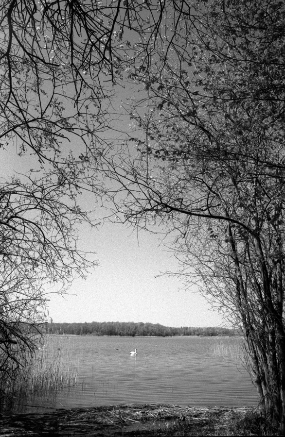 See entlang, immer zwischen Schilfgürtel und Wald, bis man schliesslich