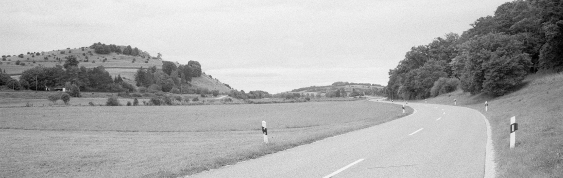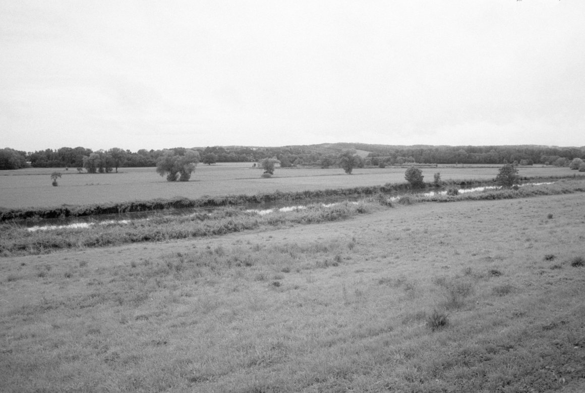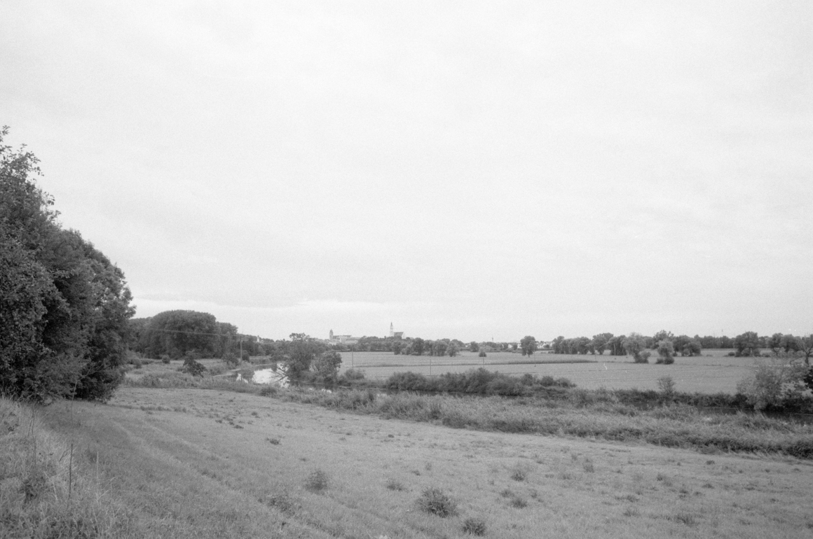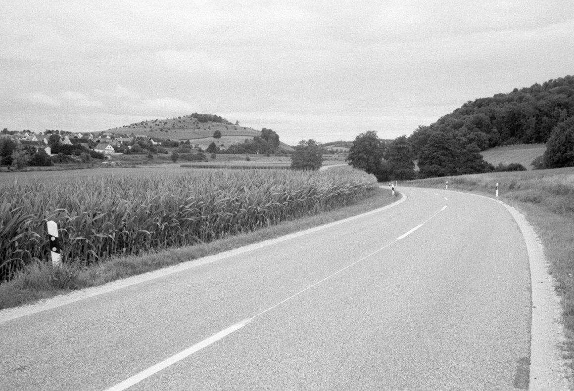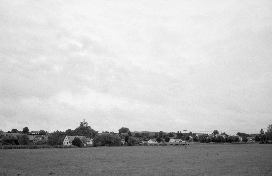 Die Schilder der "Romantischen Strasse" leiten uns aus der Stadt, auf einer still gelegten Bahntrasse gen Norden. Ein Blick zurück zeigt die Silhouette Donauwörths. Bis Harburg folgen wir dieser Route. In Harburg thront die grosse Burganlage oben auf dem Hügel, und unten im Tal gibt es, als Pendant dazu, ein etwa gleich grosses Zement- oder Betonwerk. Eine gewisse Symmetrie. Hinter Harburg verlassen wir die Romantische Strasse und folgen dem Tal der Wörnitz. Hügel mit Wacholder säumen anfangs noch das Tal, bevor es allmählich dann weit und flach wird. Die Wolken zeigen sich mal heller, mal dunkler, sie behalten jedoch ihren nassen Inhalt schön brav für sich.