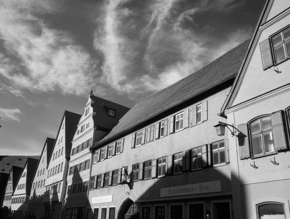 Flug. Wir sind prinzipiell schon wieder auf dem Nachhauseweg und unsere Route wird mit der Anreise fast deckungsgleich sein. Aber eben nur fast. Heute wollen wir erstmal nach Dinkelsbühl. Dazu müssen wir wieder zurück ins Wörnitztal. Eigentlich war geplant, die Route bis nach Wassertrüdingen wie neulich, aber eben in Gegenrichtung zu fahren. Allein die Beschilderung, der wir blindlings folgen, leitet uns auf den Limesradweg, der sich steigungsreicher durch das Land windet, als wir uns eigentlich wünschen. So gilt es eben, bis ins Wörnitztal einen paar Höhenmeter mehr zu sammeln, da weiss man gleich, ob man sich die letzten Tage über nun wirklich erholt hat, oder eben nicht. Jedenfalls legen wir in Wassertrüdingen eine erste Pause ein. Nachher folgen wir der Wörnitz nach Norden. Obwohl das Tal flach und weit ist, führt der Weg oft ein wenig am Talrand in die Höhe und man muss ein wenig kraxeln. Schön ist es hier. Genau nach meinem Geschmack. Ich glaub, das Wörnitztal ist im Moment mein Lieblingsflusstal, wenn man sowas überhaupt sagen kann. Als wir uns Dinkelsbühl nähern, reisst allmählich die Wolkendecke auf, die Sonne kommt durch und es wird so richtig warm. In Dinkelsbühl stellen wir erneut zweierlei fest: Die Stadt ist wirklich sehenswert und leider rollt viel zu viel Verkehr über das Kopfsteinpflaster. Immerhin ist die Strasse, in der sich unser Hotel befindet, im Sommer verkehrsberuhigt. |