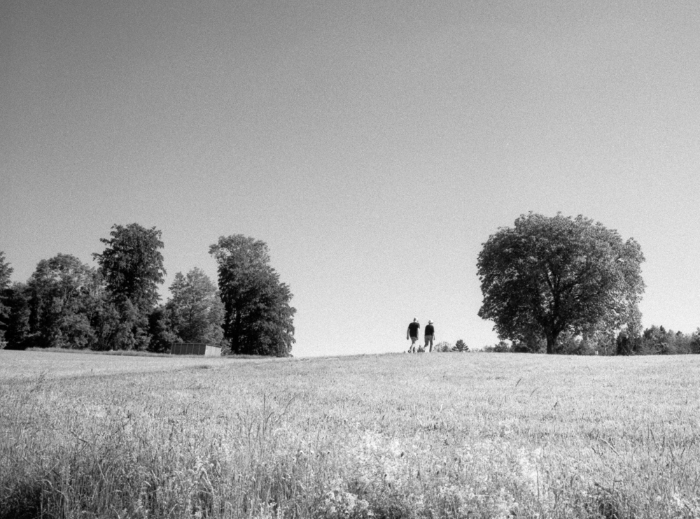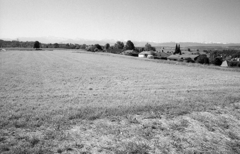 Kurz nach halbzehn sind wir in Uster und folgen den gelben Wegweisern in Richtung Osten aus der Stadt. Langsam erklimmen wir den Hügel, der das Tal das Greifensees von dem des Pfäffiker Sees trennt. Je höher wir steigen, desto weiter kann der Blick über die Stadt Uster und die Gebirgskette am Horizont schweifen, die heute fast zum Greifen nah erscheint. Wir überqueren die Autobahn und tauchen ein in den Wald. Mit den Bäumen kommt der Schatten und mit dem Schatten auch etwas kühlere Temperaturen, das kommt bei der jetzt schon auftretenden Schwüle sehr gelegen.