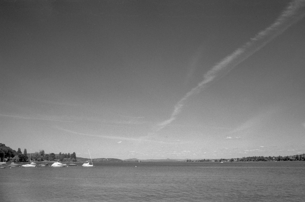 durchhält, wie er es die letzten fünfzehn Jahre getan hat. Gestiefelt und geschnürt laufen wir durch das morgenstille Kreuzlingen. Es ist Pfingsten. Und sonnig. Was haben wir doch für ein Glück mit dem Wetter! Jenseits der Stadt wartet ein Anbaugebiet für Feldfrüchte auf uns, dann tauchen wir in den Auwald ein, der das Südufer des Seerheins ziert. Eine Reihe kleiner Städtchen mit Fachwerkhäuschen wartet auf uns. Gottlieben zum Beispiel. Blickt man in die Ferne, so kann man die Vulkanlandschaft des Hegau und die lange Allee erkennen, die zur Insel Reichenau führt. Als der Tag voranschreitet, füllen sich die Wege mit Radlern, Wanderern und Joggern. Leider geht das in den Passagen, wo Wander- und Radweg auf gleicher Trasse geführt werden, nicht immer ohne eine gewisse Rigorosität von Seiten des vermeintlich Stärkeren. Man kann gut an sich selber beobachten, wie die eigene Aggression geweckt wird, wenn einem mit genau der gleichen Emotion begegnet wird. Doch das soll nicht darüber hinweg täuschen, dass heute wirklich ein schöner Wandertag ist. Und ein recht langer noch dazu. Und doch halten wir gut durch mit unserem mitgeschleppten Gewicht. Am frühen Nachmittag kommen wir in Steckborn an, beziehen unser Hotelzimmer und können noch den restlichen Nachmittag am See verbringen - freilich dick eingepackt, denn der Wind ist wirklich recht kalt. |