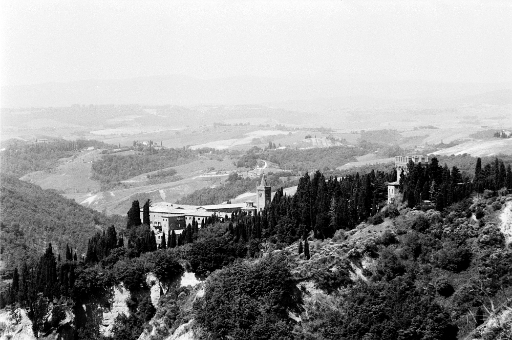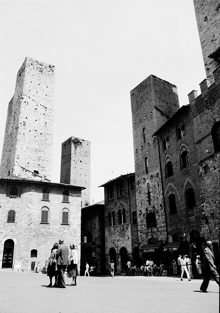 ...und andere Toskanigkeiten. So könnte man es nennen. Es waren die achtziger Jahre, Italien und besonders die Toskana noch nicht so fest in der Hand fernöstlicher Reisegruppen. Man konnte die Orte noch einigermassen in Ruhe besichtigen, ohne durch die Strassen und Gassen geschoben zu werden und die Oberhoheit über die eigene Fortbewegung aufgegeben zu haben. Den Studienfreund abgeholt, Aquarellkasten, Skizzenblock und die Minolta verstaut, den Ford Taunus aufgetankt und dann über den Brenner nach Süden gedüst, so lief das damals...