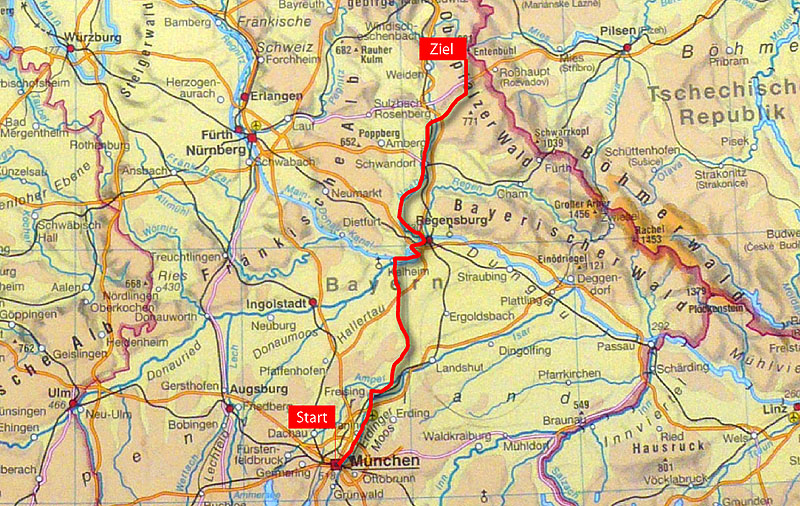 will mit dem Fahrrad die Strecke von München nach Oberviechtach fahren!