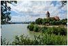 Draussen knirscht der Kies. Der gesamte Innenhof der "Le Moulin Bas" wird gerade betischt und bestuhlt, denn heute Abend erwartet man hier eine Hochzeitsgesellschaft. Zusätzlich ist um die Mittagszeit wohl eine hundertfünfzigköpfige Motorradtruppe hier eingefallen und die ganze Belegschaft rotiert nun, um deren Hinterlassenschaften aufzuräumen und alles für den anstehenden Event vorzubereiten. Als ich besagtes Knirschen höre, liege ich gerade in der Badewanne und geniesse das Bewusstsein einer schön verlaufenen ersten Etappe und trinke dazu ein Bier. Das darf man. Auch wenn der Tacho bei "nur" siebenundvierzig Kilometern stehen geblieben ist. Doch diese siebenundvierzig Kilometer an unserem ersten Etappentag hatten es stellenweise in sich! Das fing schon damit an, dass wir gestern für unsere Verhältnisse erst sehr spät ins Bett kamen und heute dementsprechend, na ja, un-fit waren. Das war allerdings einkalkuliert und wir hatten uns deswegen eigentlich vorgenommen, eine möglichst bequeme erste Tagestour zu fahren. Doch Wunschdenken und Realität sind oft zwei Paar Stiefel Der Landgasthof, in dem wir heute untergekommen sind, geht auf die Empfehlung eines Arbeitskollegen zurück ("gutes Essen, idyllisches Ambiente, absoluter Geheimtipp"), der ausserdem meinte, Ligsdorf liege ja nur etwa zwanzig Kilometer von Basel entfernt. Stimmt natürlich. Aber als Autofahrer denkt man einfach in anderen Kategorien und so unbedeutende Details wie Höhenunterschiede oder Verkehrsaufkommen interessieren da nicht so sehr. Mir war zwar bei der Planung dieser ersten Etappe schon klar, dass wir nicht auf dem geraden Weg hierher radeln würden/könnten/sollten, aber mit der wirklichen Streckenlänge und vor allen Dingen mit den tatsächlichen Höhenmetern hatte ich mich wohl etwas verkalkuliert. Egal, wir sind müde aber glücklich hier angekommen und entspannen uns nun, und ausserdem war's landschaftlich eine schöne Tour. Ursprünglich wollte ich auf dieser Reise ja das neue Trike fahren, hab mich aber heute früh doch noch ganz spontan gegen das Dreirad und für die Speedmachine entschieden. Irgendwie bekam ich plötzlich Panik wegen der französischen Strassenverhältnisse. Nicht mal unbedingt wegen der Schlaglöcher und "Fleckerlteppiche" auf/in all den kleinen und kleinsten Strassen, sondern wegen dem manchmal sonderbaren Querschnitt: es gibt oft einen Scheitelpunkt in der Mitte der Strasse und zum Strassenrand hin ein mehr oder minder heftiges Gefälle. Und wer schon mal Erfahrungen mit einem Dreirad gemacht hat, der weiss, dass man auf so einem Gefährt bei solch einem Untergrund einfach schräg sitzt, weil sich Trikes nun mal nicht in die Kurve bzw. Schräge lehnen wollen. Zudem ist die Mitnahme eines Rades in den Zug in Frankreich immer so eine Sache. Man kommt zwar in den Regionalzügen immer mit, aber der Platz, der für die Velos zur Verfügung steht, kann eben vom extra Gepäckwagen bis zum stillgelegten Personenabteil mit ultraschmalen Türen reichen, da ist so ziemlich alles drin. Und auch diesbezüglich ist man mit einem Zweirad doch besser bedient. Jedenfalls: das Trike bleibt kurzerhand zuhause und die als Reiserad mehr als bewährte Speedmachine kommt wieder mit. Zwar ist das Rad noch in genau dem Zustand, in dem ich es nach der letzt jährigen Reise von Zürich nach Oberviechtach in den Keller stellte (Schande über mich), aber das wird schon irgendwie gehen. Und wie sich heraus gestellt hat, war diese Entscheidung auch richtig. Der Zug um kurz nach zehn bringt uns heute von Oerlikon nach Basel. Der Stadtverkehr in Basel gestaltet sich erstaunlich ruhig und wir finden (fast) auf Anhieb den Einstieg in den Kanalweg in Huningue. Das Gewässer, neben dem unser Pfad entlang führt, fliesst hier zuerst durch ein Wohngebiet. Dort hat man so eine Art Naherholungszone geschaffen. Sogar mit einem Wildwasser-Parcour für Kajaks, der heute recht frequentiert wird. Auf genau derselben Strecke, die wir schon auf früheren Reisen - zum Beispiel im letzten Jahr - genommen haben, kommen wir völlig verkehrsfrei aus der Basler Agglomeration heraus. Zudem erinnert heute die "Petit Camargue Alsace" wirklich an die Namensgeberin in Südfrankreich, gerade bei dem wolkenlosen Mittagshimmel und den heissen Temperaturen. Dazu noch all das Schilf und die Wasserpflanzen. Bei Rosenau kehren wir dem Ganzen dann allerdings den Rücken. Jetzt gilt es erstmal, sich wieder an Frankreichs Strassen zu gewöhnen. Und daran, dass hier auch noch Autos fahren und man nicht alleine auf weiter Flur ist. Die weite Flur heisst hier übrigens "Sundgau"! Bartenheim, Brinckheim, Kappelen das sind alles schmucke Elsässer Dörfchen, fein herausgeputzt. Man sieht oder vermutet, dass sich hier auch der ein oder andere Schweizer oder Deutsche ein Domizil jenseits der eigenen Landesgrenze geschaffen hat. Verdenken kann man's demjenigen nicht - angesichts der grossen Gärten und des Platzangebotes kommt man durchaus auch selber ins Träumen. Wenn man so ein Anwesen mit uraltem Baumbestand übernehmen könnte! Das Häuschen dürfte ruhig klein und unscheinbar sein aber ein Park oder Garten mit so eindrucksvollen Bäumen, wie man sie hier sieht, das wär's Aber wo waren wir? Ach ja: auch Kappelen gehört mit