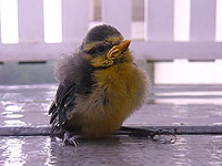 es plötzlich eine dumpfes Geräusch und eine junge Meise sitzt