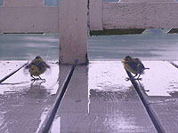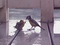 Meisenkind dazu. Erst sitzen sie zu zweit bettelnd auf dem Balkonboden,