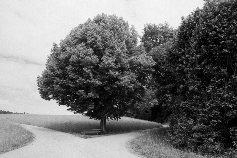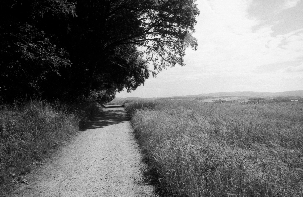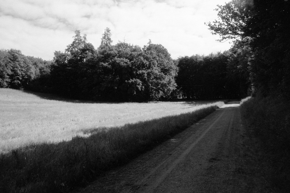 der Stadt und tauchen in ein Wäldchen ein. Auf der anderen Seite des