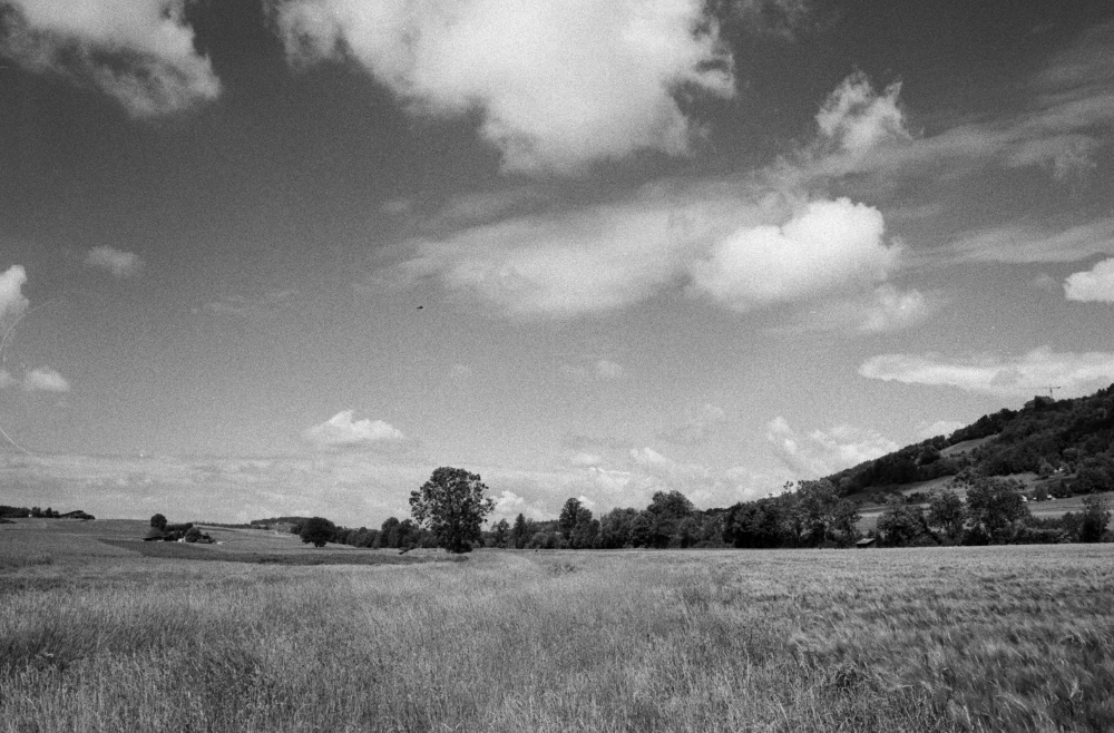 Wäldchens angekommen, breitet sich ein weites Tal vor uns aus. Irgendwo